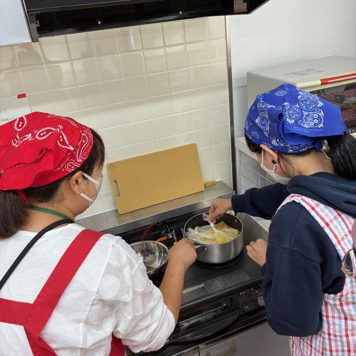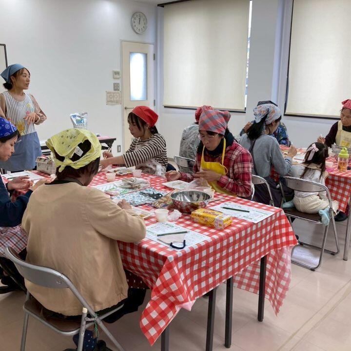 後半は、調理実習です。9月に実施した静岡センター感謝祭では、ライフラインが止まった状態を想定して、加熱調理なしで作れる防災ランチを試食してもらいましたが、今回は、卓上コンロなどで火が使える状況になったことを想定し、まずは、グループごとにパッククッキングで4品作りました。