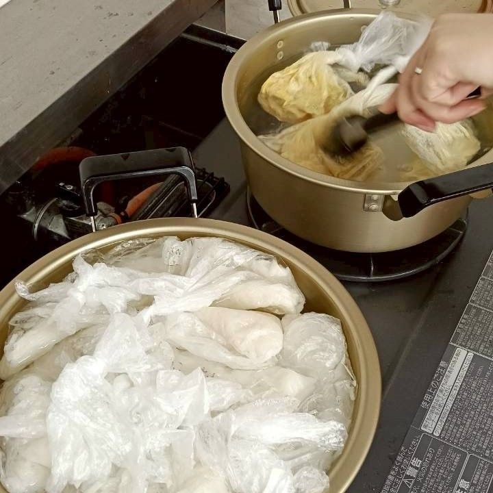 パッククッキングは、材料や調味料を耐熱性のポリ袋に入れて、袋ごとお湯の中で温めて調理する方法。