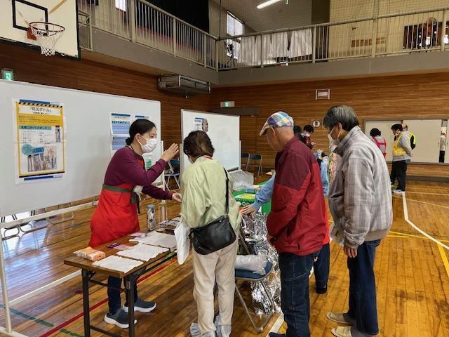 昨年までは防災食の試食やローリングストック法などお伝えしてきましたが、今年度は防災ボトルの展示、アルミブランケット体験、長期保存できる「CO・OP北海道産小豆のひとくち塩ようかん」の配布をおこないました。