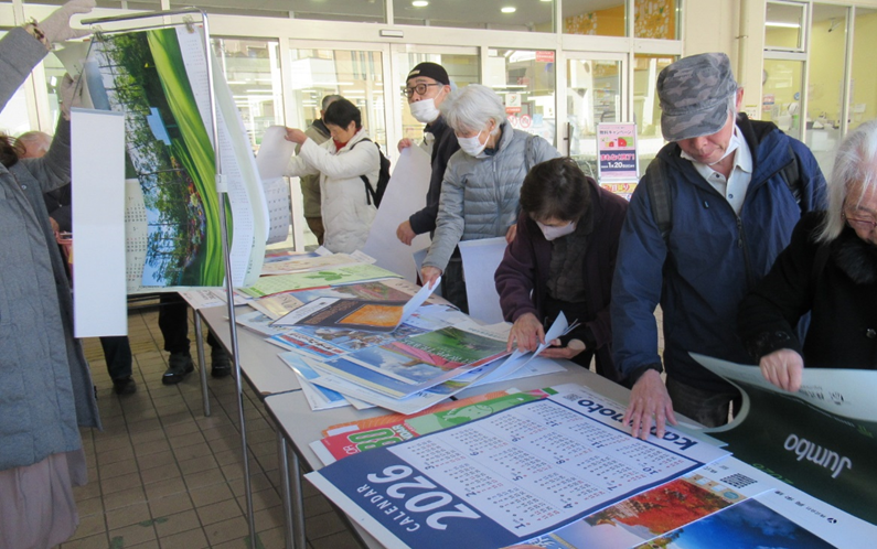 きれいな景色や絵画・動物などのカレンダーの人気があり、また書き込めるスペースの大きい実用的なカレンダーを選ぶ方も多くいらっしゃいました。皆さん時間をかけて選んでいて、たくさんのカレンダーを抱えていたり、ご夫婦で来られて複数のカレンダーを持ち帰っていたりと大変にぎわっていました!