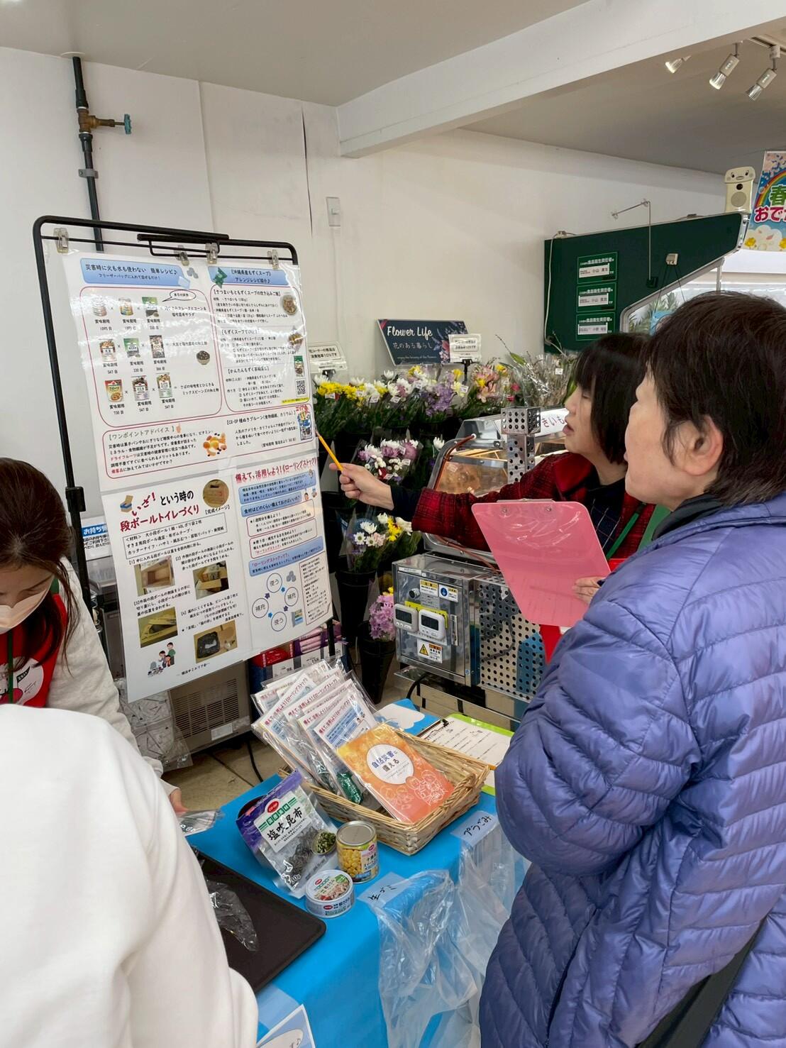 エリア会が作成した資料をご覧いただき、ローリングストックや、ご自宅で実際に備蓄されている食材などがあるかなど、自然災害に備える意識を再確認していただきました。