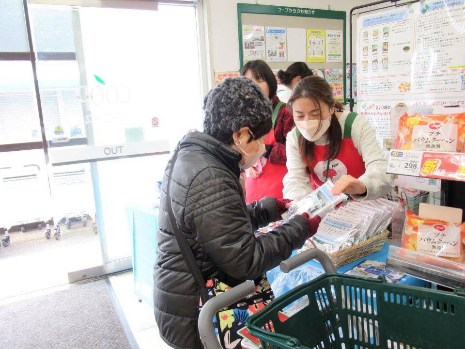 アンケートにお答えいただいた方には、エリア会おすすめの“種ぬきプルーン”、“もずくスープ”、自然災害に備える冊子をセットにしてプレゼントしました。