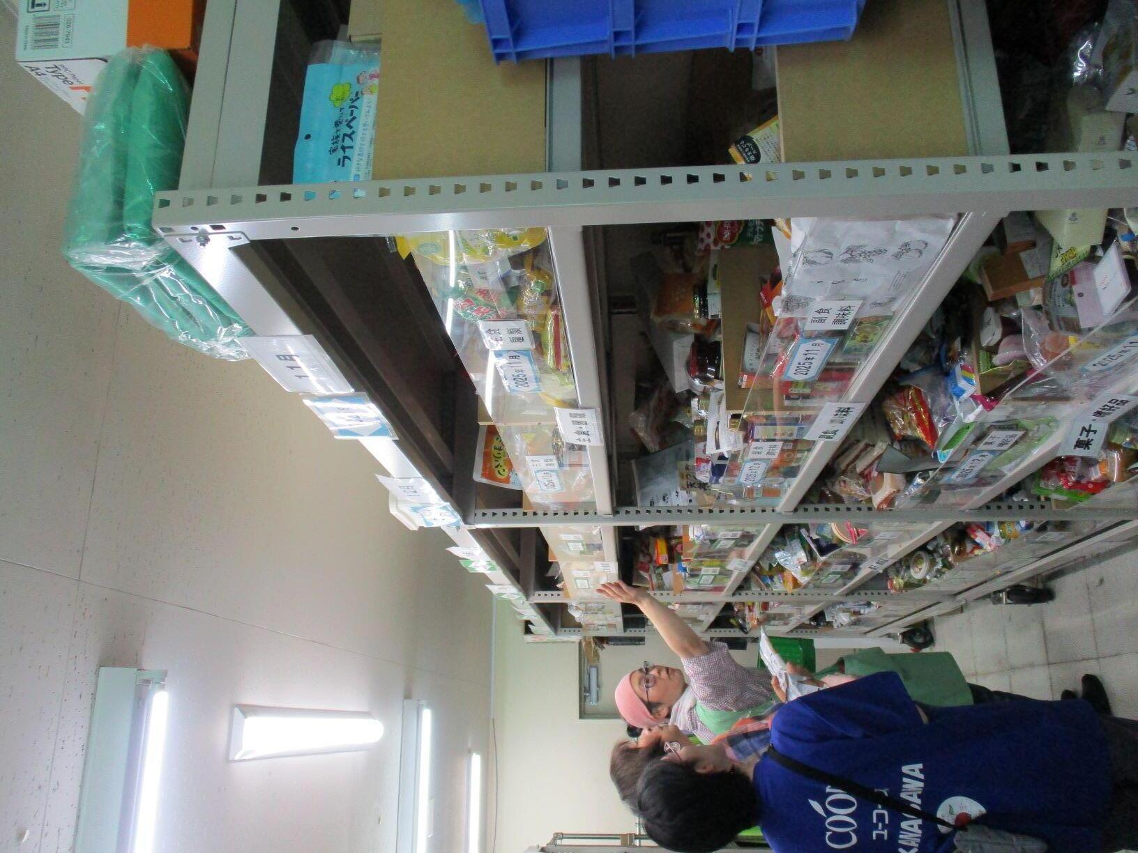 みなさん初めての経験なので、たくさんの食品をストック棚に入れる作業が、慣れるまで大変でした。