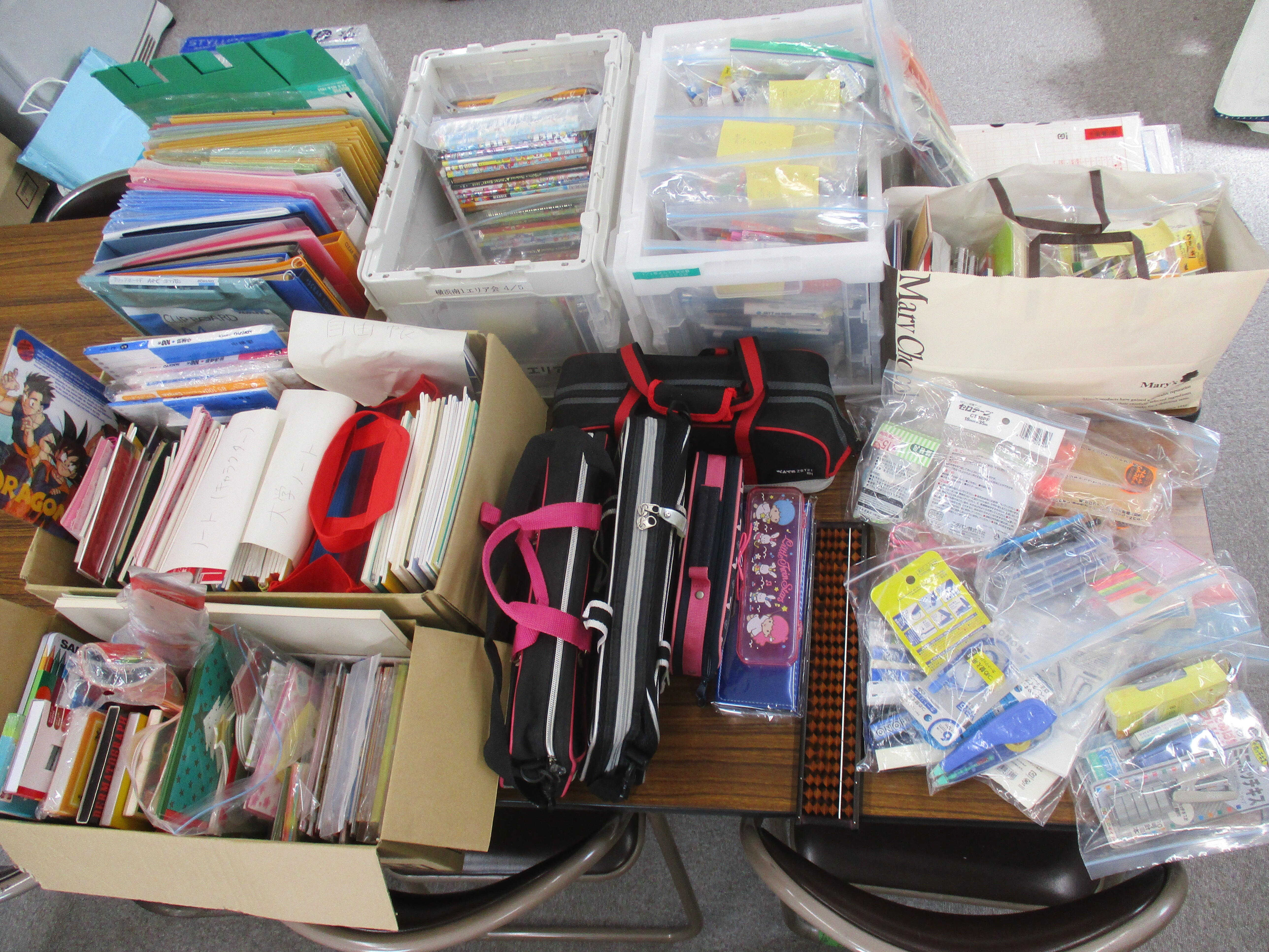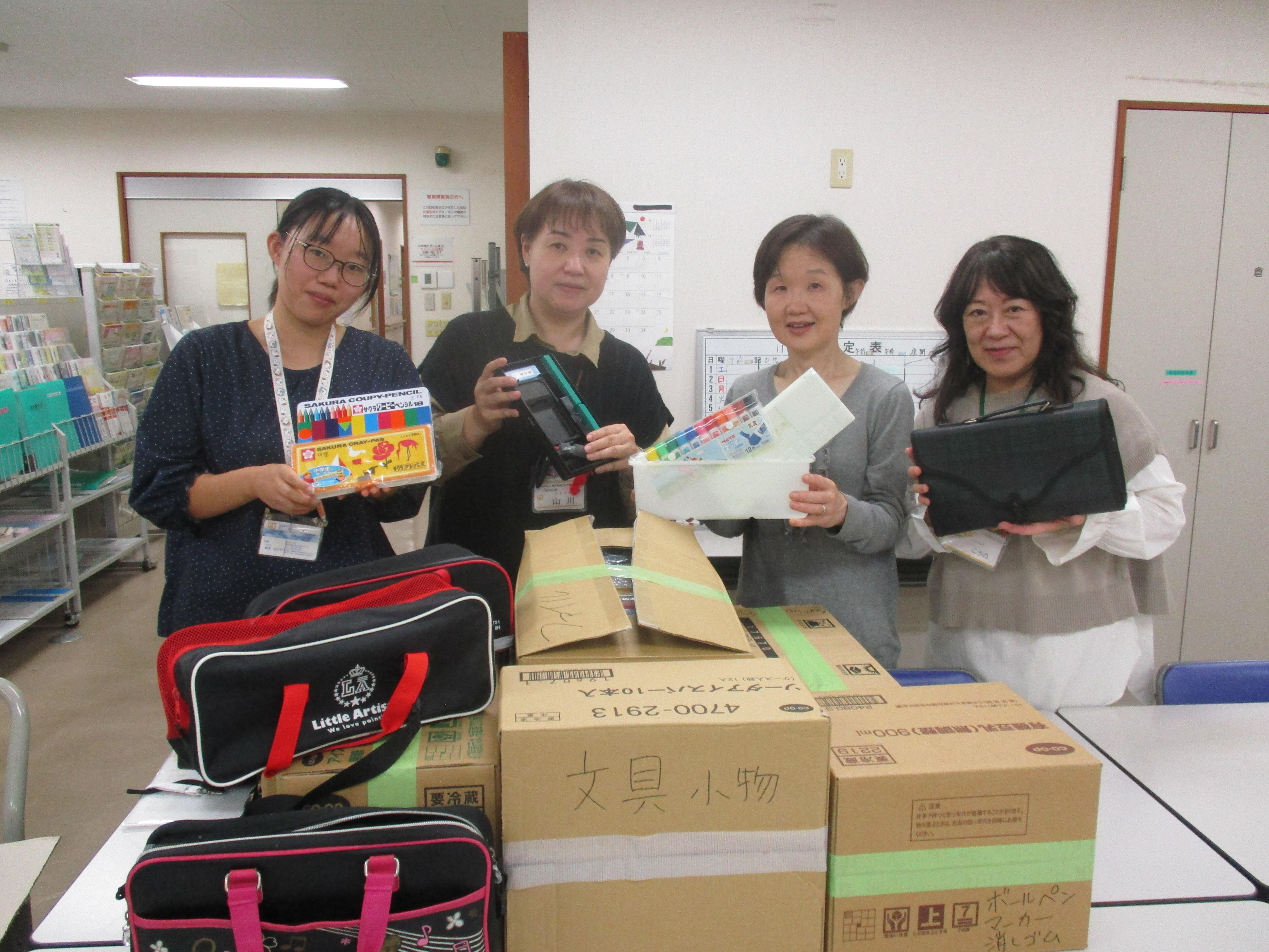 昨年9月の開催に引き続き翌年の開催となったため、今回はあまり回収率が伸びないかもしれないと心配しましたが、予想に反してたくさんの文房具や道具セットが集まりました。