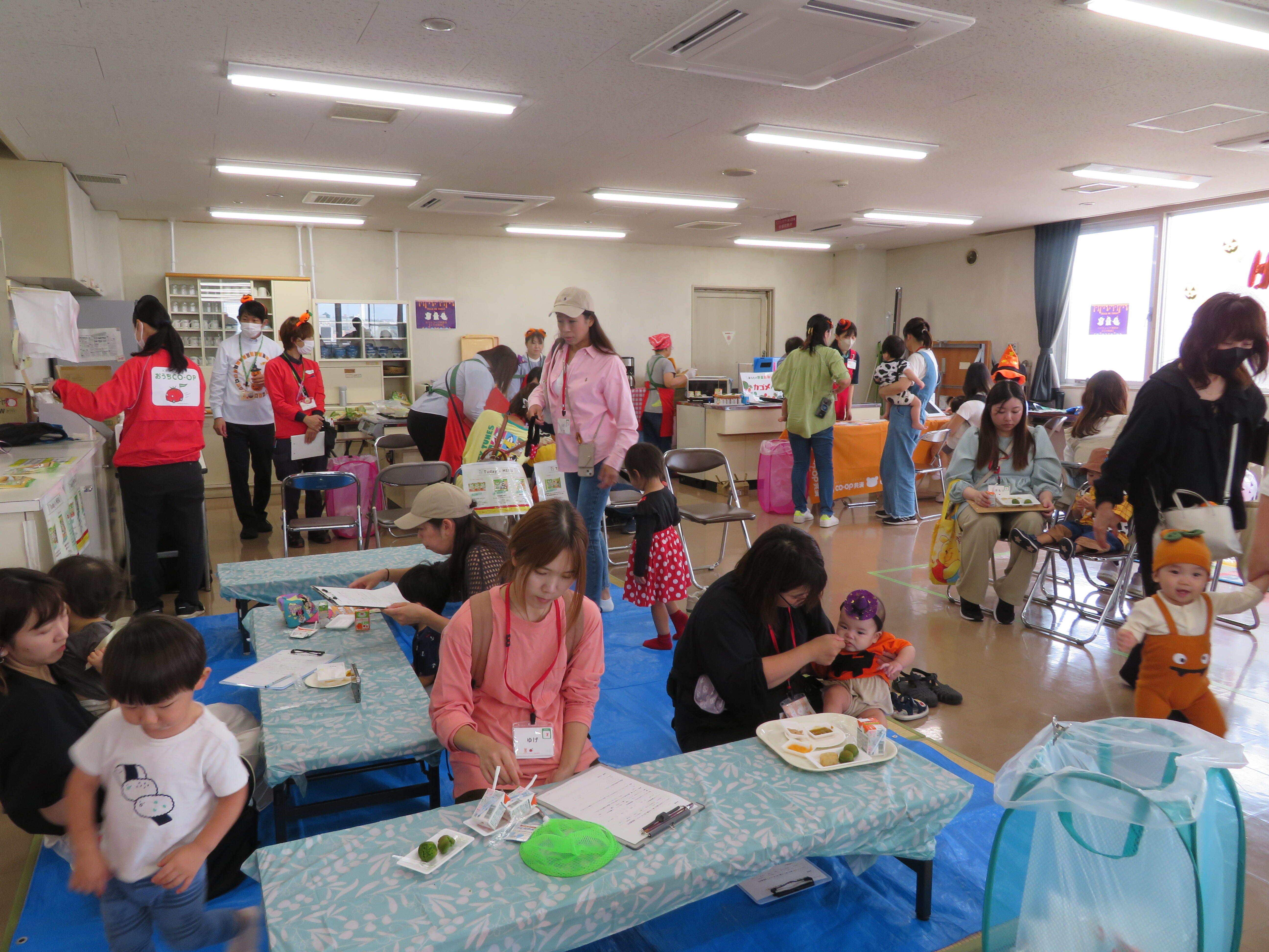 ハーモス座間にてひまわりひろば(子そだてひろば)とのコラボ企画「HALLOWEEN PARTY」を開催しました。 抽選で選ばれた23組のご家族が参加し、スタンプラリー形式で各ブースを周ってもらいました。