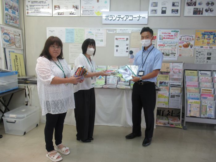 8月28日(木)に小田原市社会福祉協議会と二宮町社会福祉協議会に伺い、集まった文具類をお届けしました。