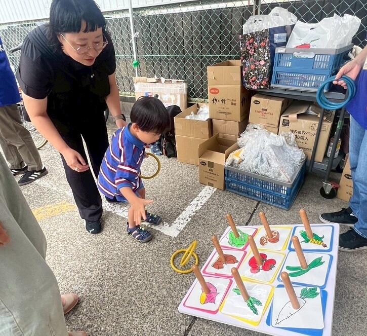 エリア会の輪投げに参加いただいたお子さんには、コープファミリー菓子と共済グッズをプレゼントし、たくさんの方に楽しく参加していただきました。