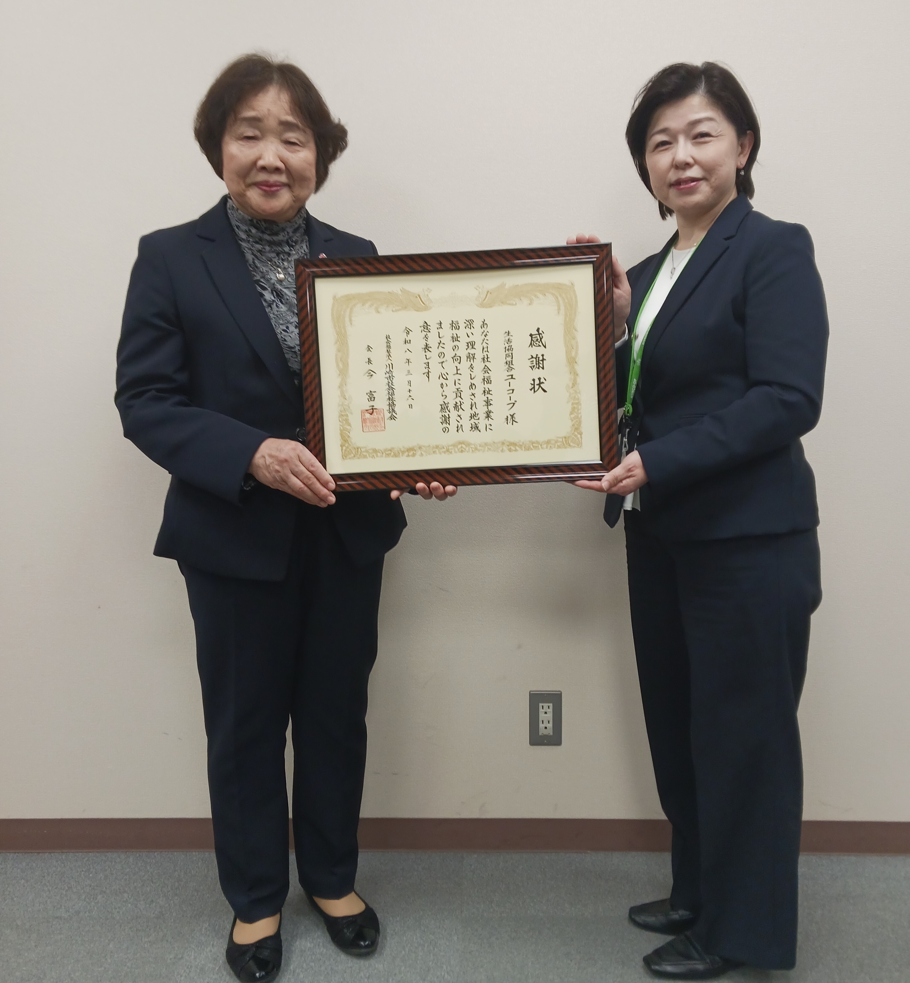 ★3月16日(月)に川崎市社会福祉協議会へ目録をお届けしました。贈呈式にはユーコープを代表して山野寺理事が参加しました。
