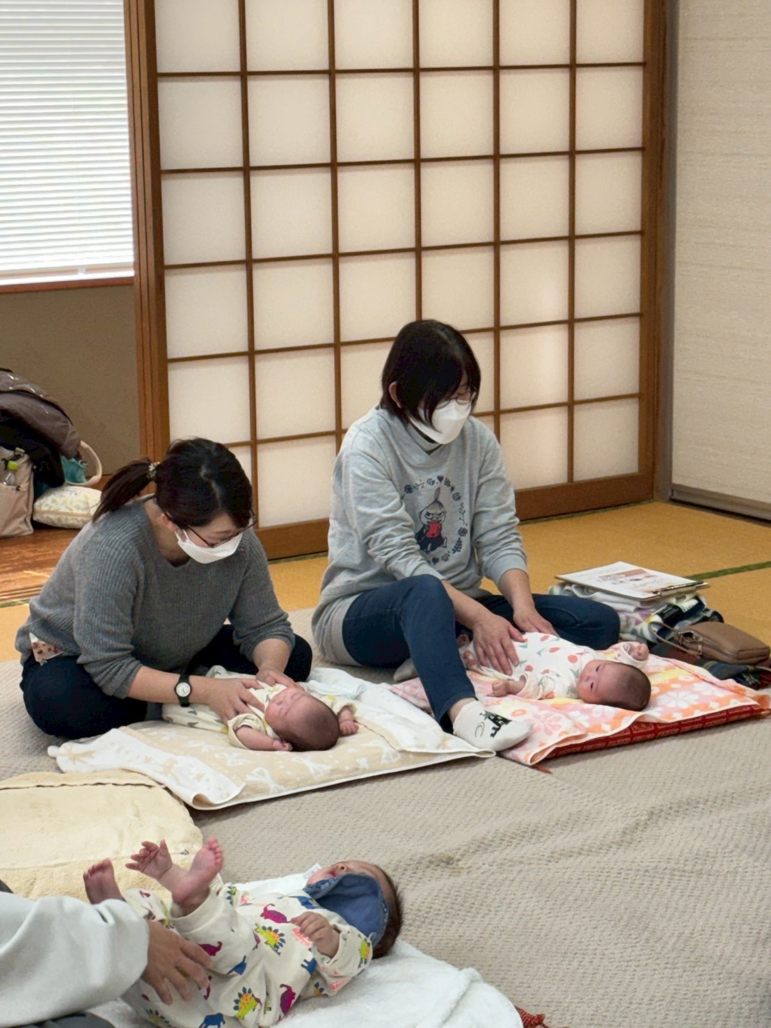 里帰り中の2カ月の双子のお母さんとそのお母さん。