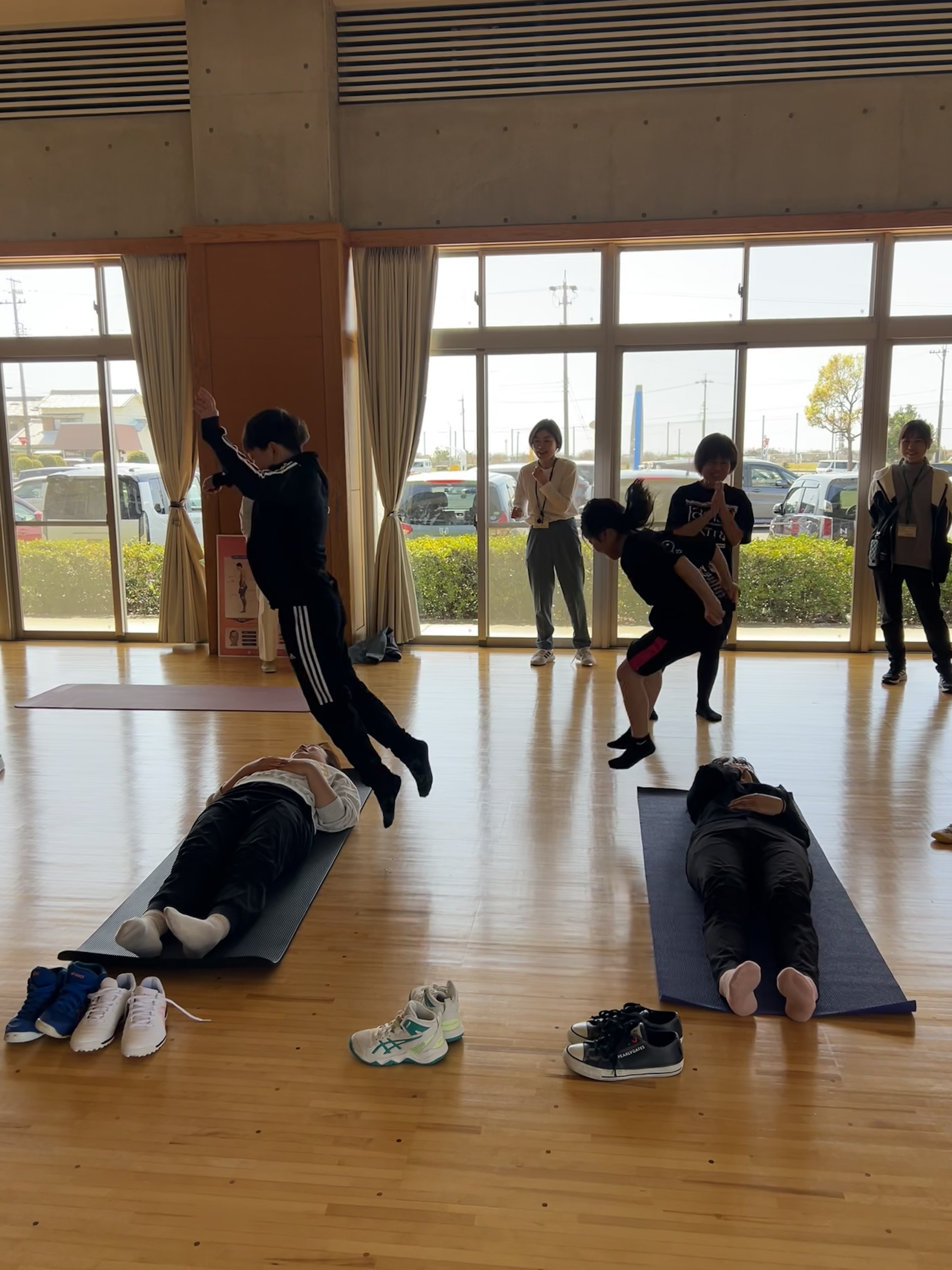 3月の春休み期間中に雄踏総合体育館と可美総合運動公園の軽運動室にて開催した『美姿勢整体の先生と親子de体操』では、計13組の親子35名にご参加いただきました。