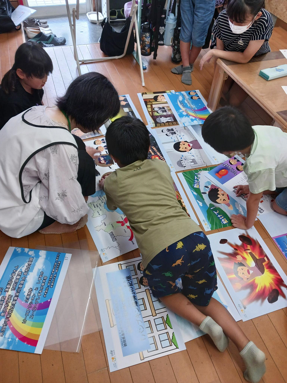 紙芝居は、夏休み期間中、各クラブそれぞれのタイミングで読み聞かせをしていただきました。子どもたちは平和について考える、貴重な時間をもつことができました。
