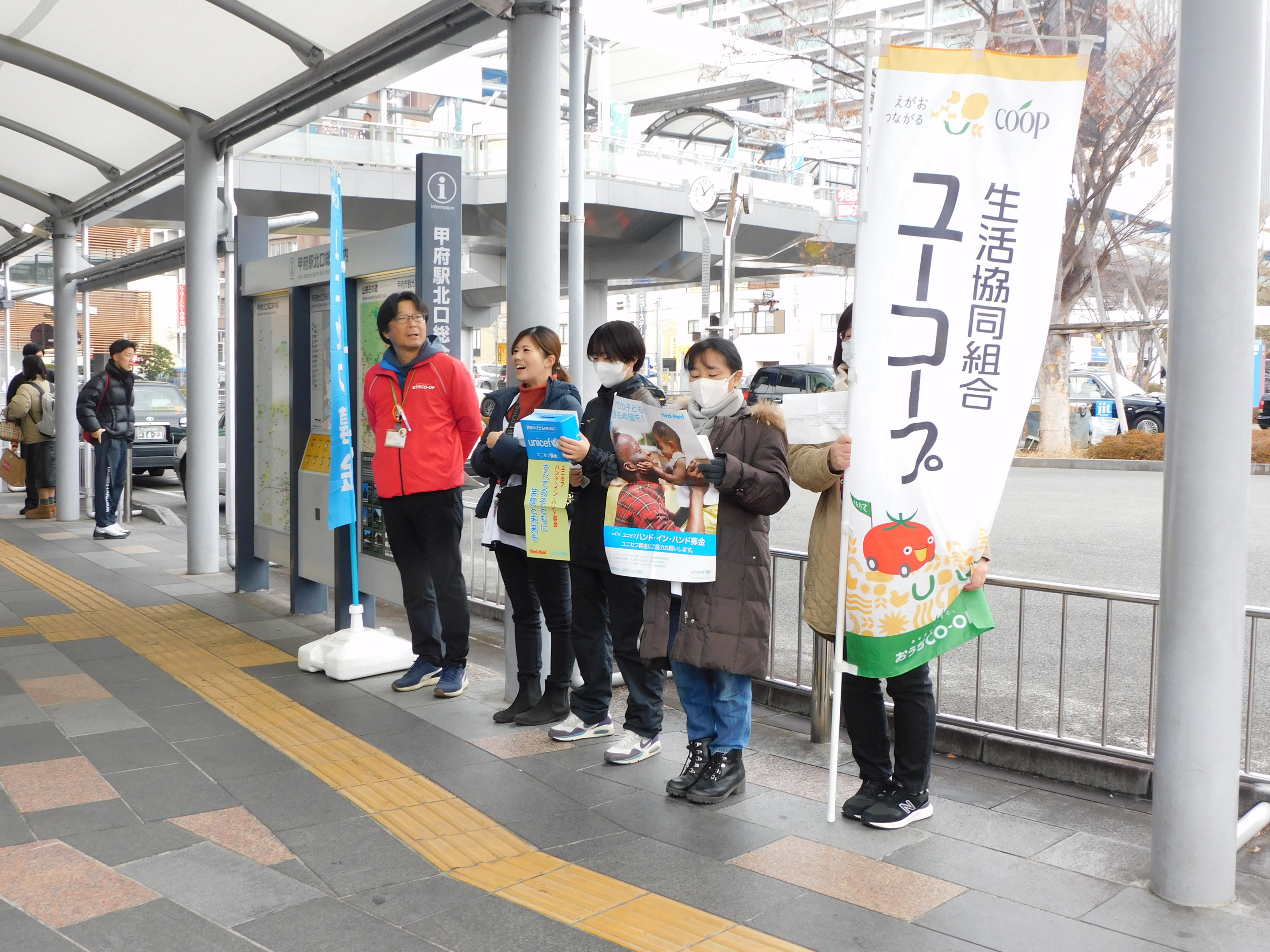 【やまなし】ユニセフ「ハンド・イン・ハンド街頭募金」活動を行いました 開催日12/20