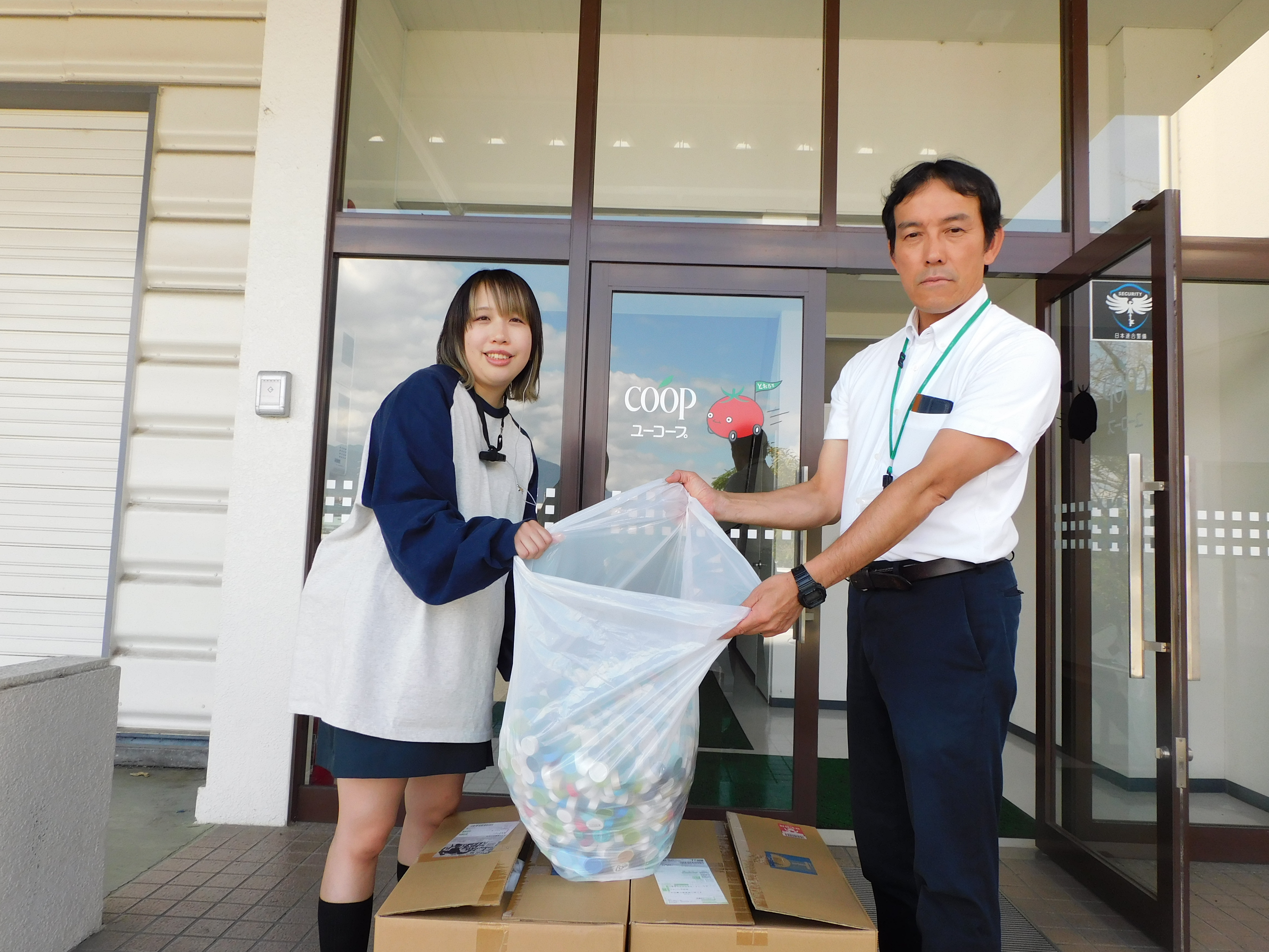 明治安田生命保険 甲府支社 様より、ペットボトルキャップ30.6㎏を寄贈いただきました。