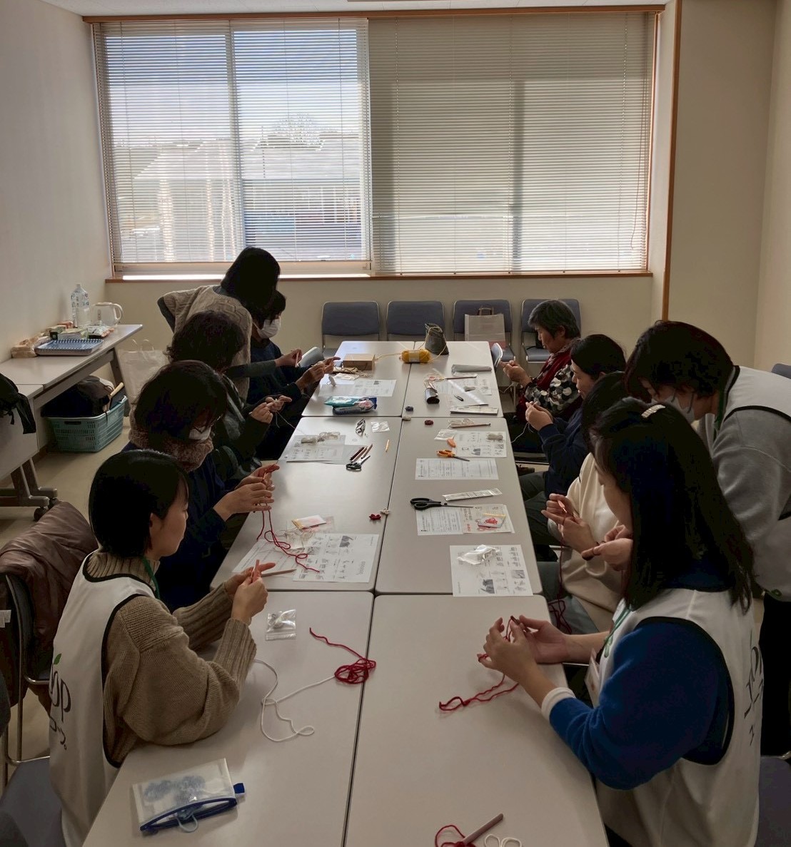 お隣の方と交流しながら、和気あいあいとした雰囲気の中、編み進めていきます。