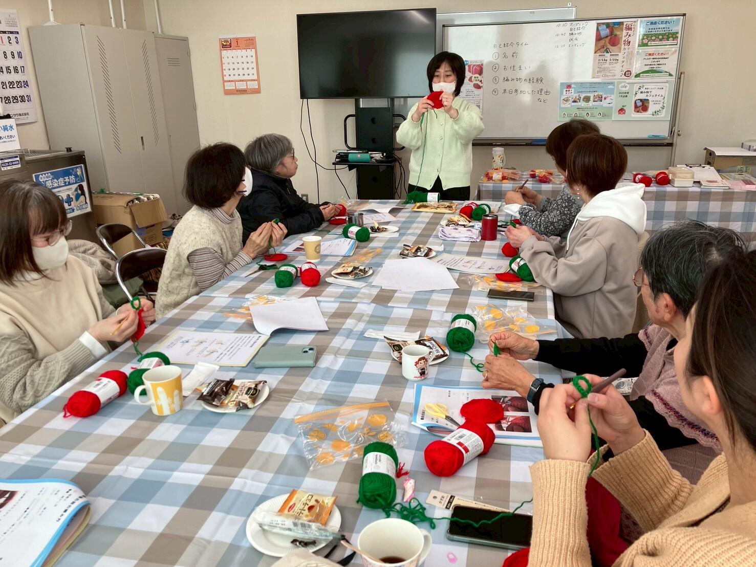 1月13日(火)おうちCO-OP伊豆センター、1月20日(火)韮山時代劇場にて、「みんなで♪編み物でカフェタイム」を開催しました。