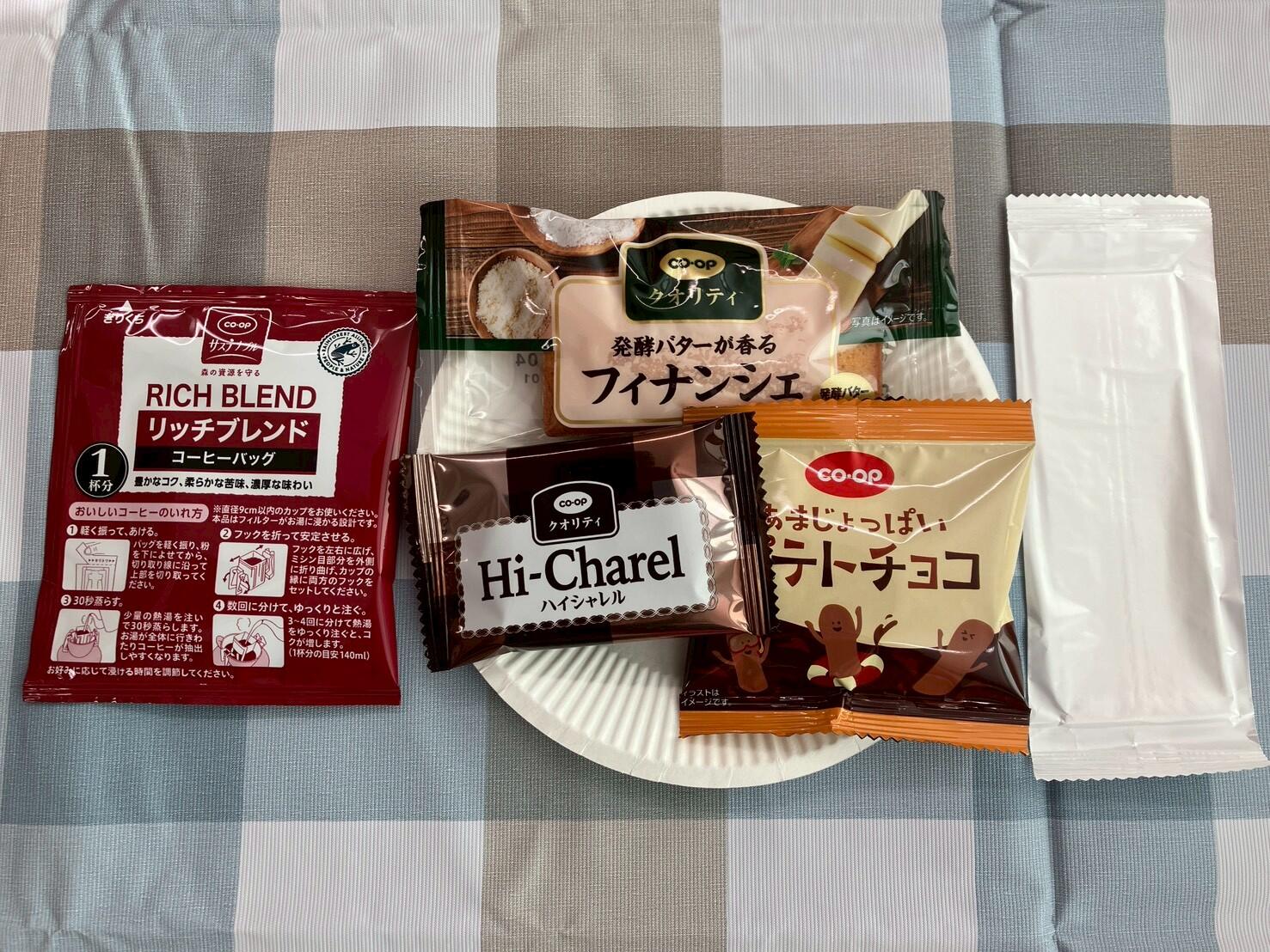 途中には、コーヒーや紅茶と一緒に、「CO・OP発酵バターが香るフィナンシェ」などのお菓子で、ほっと一息。