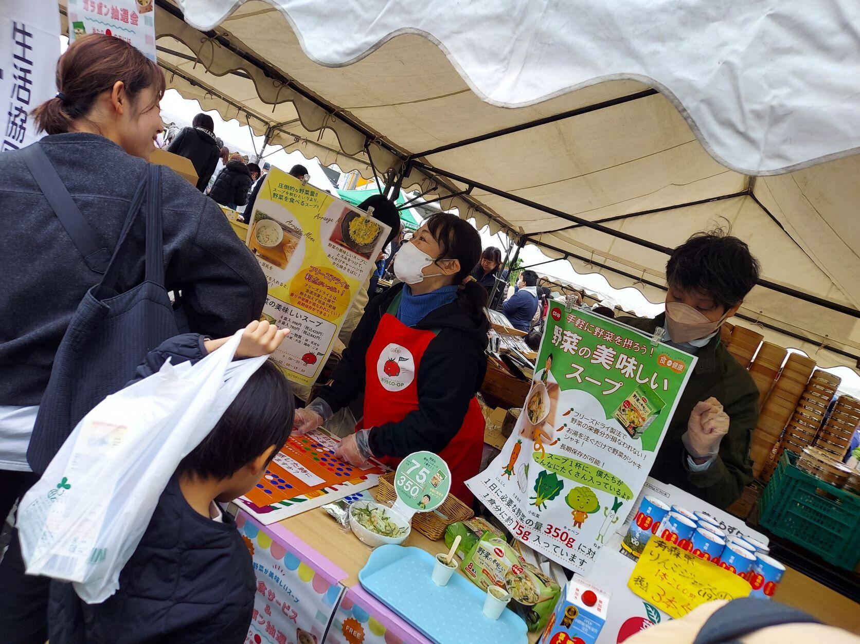 ユーコープのブースでは、「食べよう!野菜。1日350gとれていますか」?というテーマで『野菜の美味しいスープ』を試食していただきました。