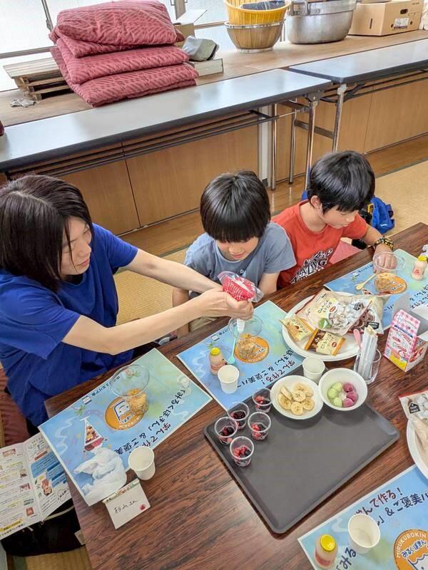 ・生乳がいろんなものにわかられるんだなと思いました。パフェ作りはごうかでおいしかったし、作るのもたのしかった。また作りたいと思います。(小2 男の子)