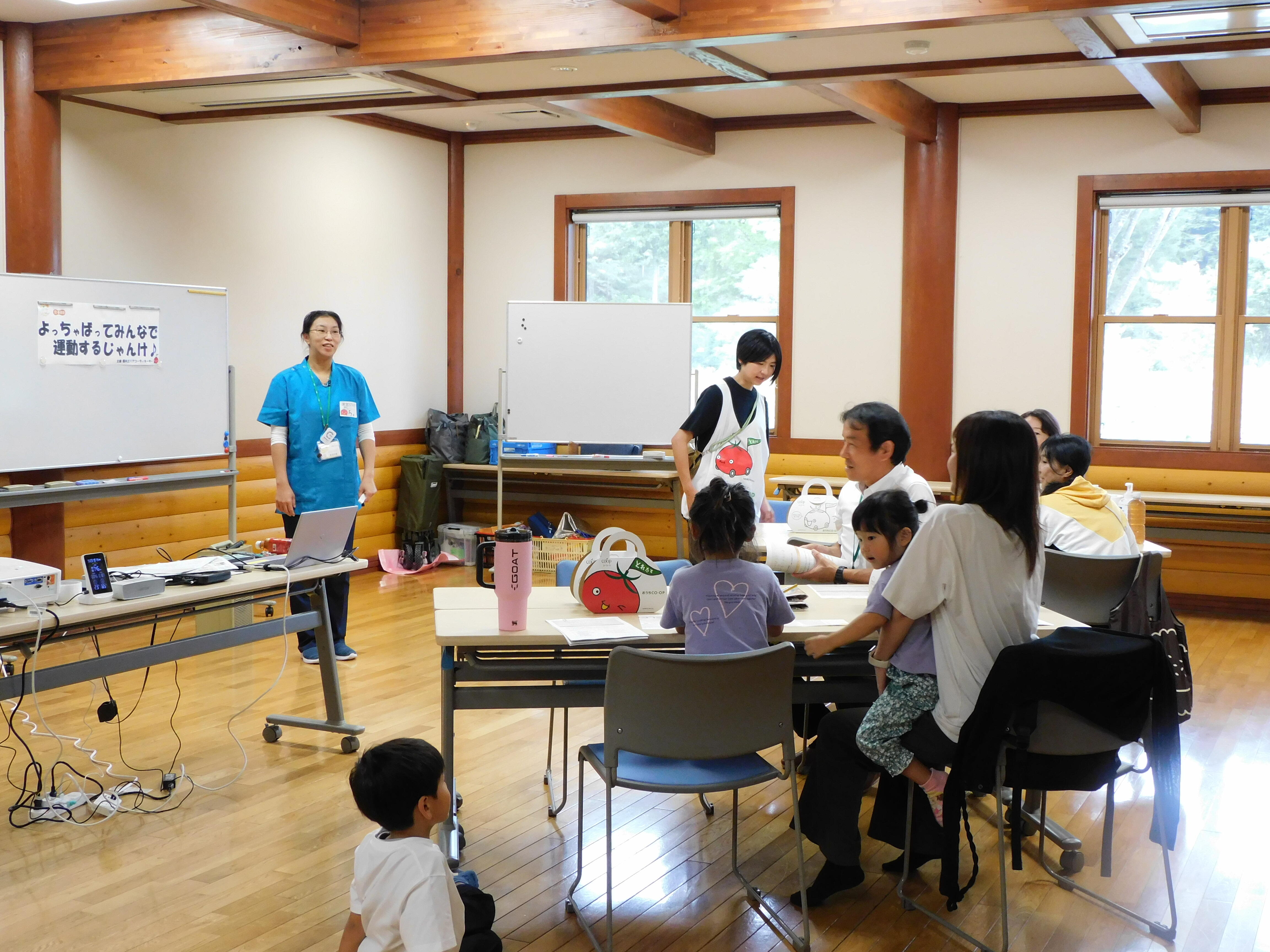 郡内エリアコーディネーターの丸山さんが講師となって、「身近にあるもの」「家でのながら運動」を中心にラジオ体操程度の楽しみながらできる運動を学びました。