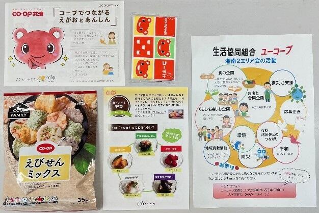 クイズに参加してくださった方には、大人気のモンスターパンチと、コープファミリーシリーズのお菓子をプレゼント。食DE健康のリーフレットやエリア会活動についてのチラシもお渡しして、組合員以外の方にもユーコープの取り組みをお知らせすることができました。