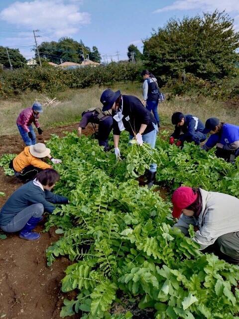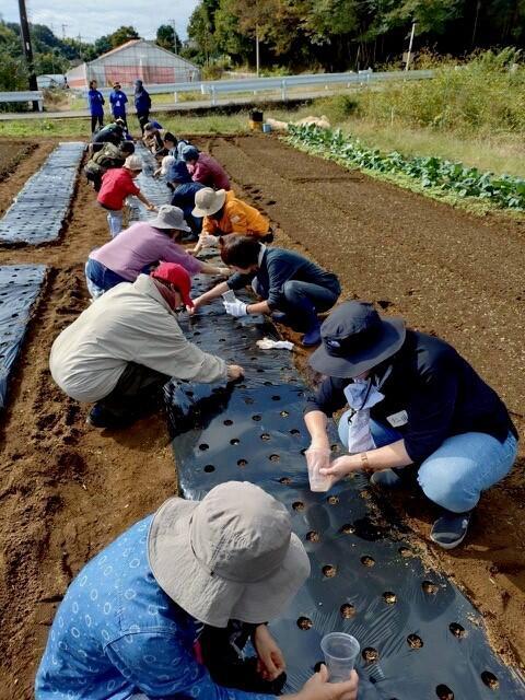 お天気に恵まれた10月28日、川崎市麻生区黒川のJAセレサ川崎さんの畑で畝立て、マルチ張り、2種類のカブの種まき、大根の間引きなどを行いました。土とふれあいながら楽しい時間を過ごし、畑に笑顔があふれていました。元気に育った野菜を収穫するのが待ち遠しいです。