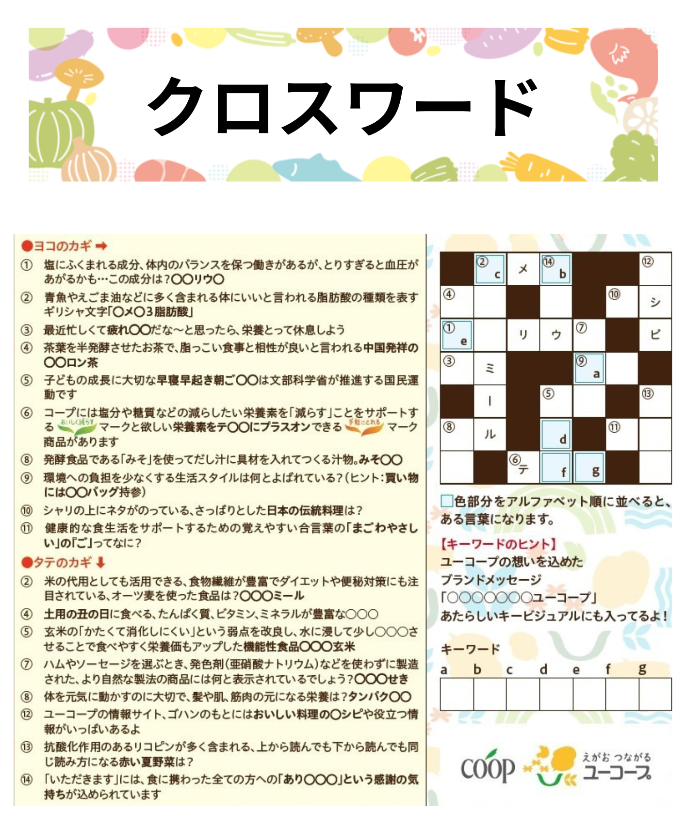 クロスワードを解きながら、「考える・学ぶ」ことで健康への良い刺激にしてもらい、より良い食生活を送るきっかけにしていただきました♪