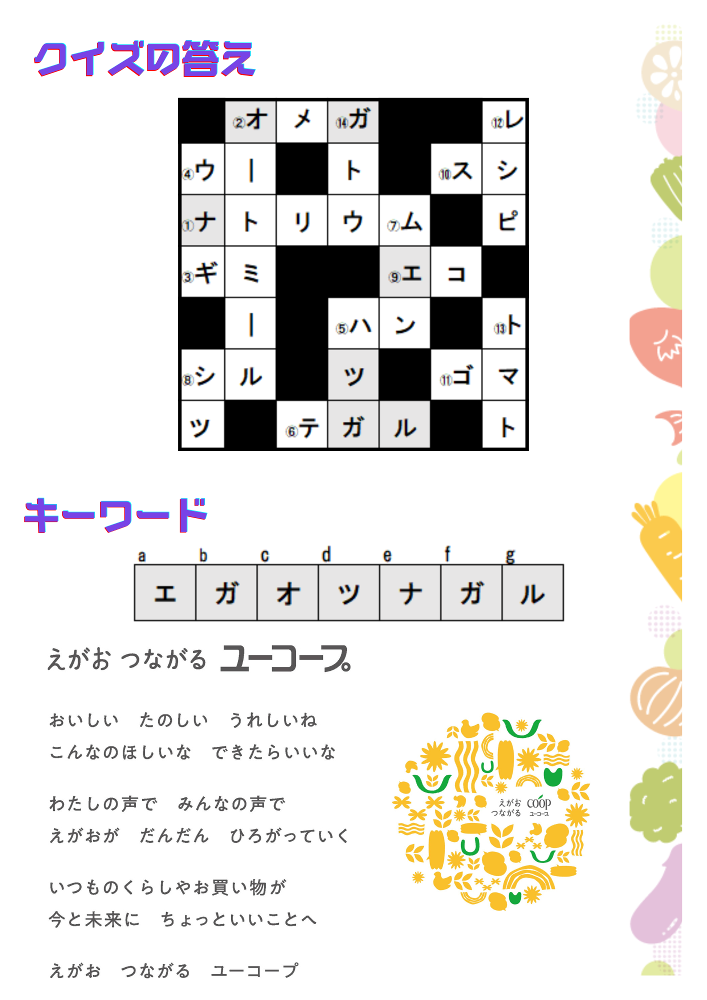 ・クイズを楽しく解きながら、健康知識が自然と身に付き、コープ商品の情報、宣伝効果も兼ね備えた作りには感心しました!