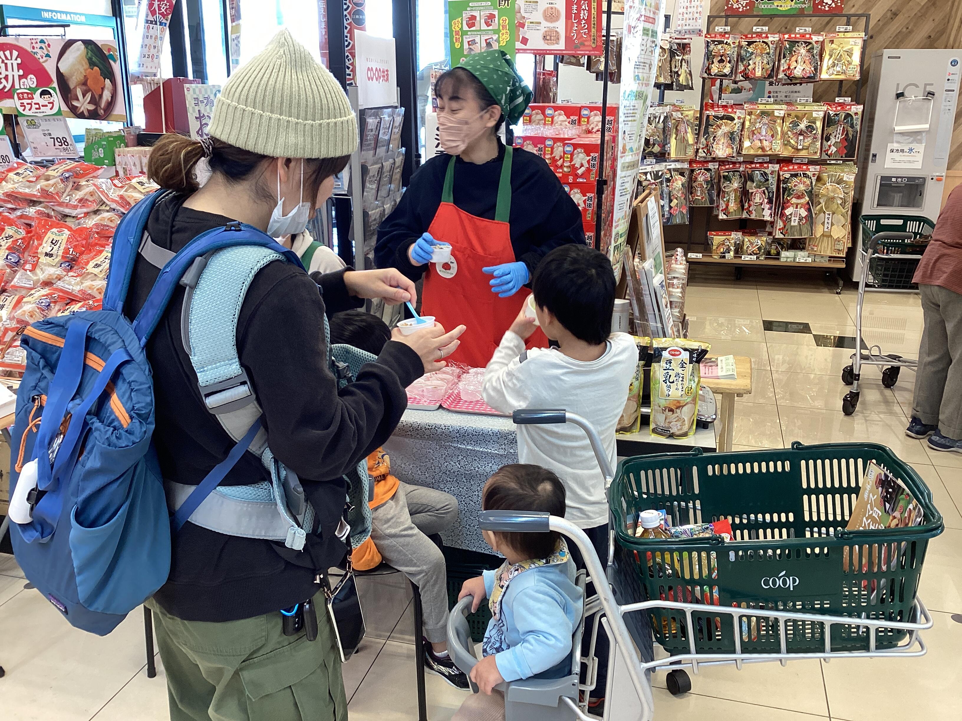 豆乳鍋を食べてみた感想のアンケートでは「おいしかったのでぜひ作ってみたい!」22名、「おいしかった」5名、「自分にはあわなかった」1名の結果に。作ってみたい!と回答してくれた方が大多数で嬉しかったです。肉巻きおにぎりは、とくにお子さんに人気で「もっと食べたい」という声や、試食後に注文してくださる方も居ました。