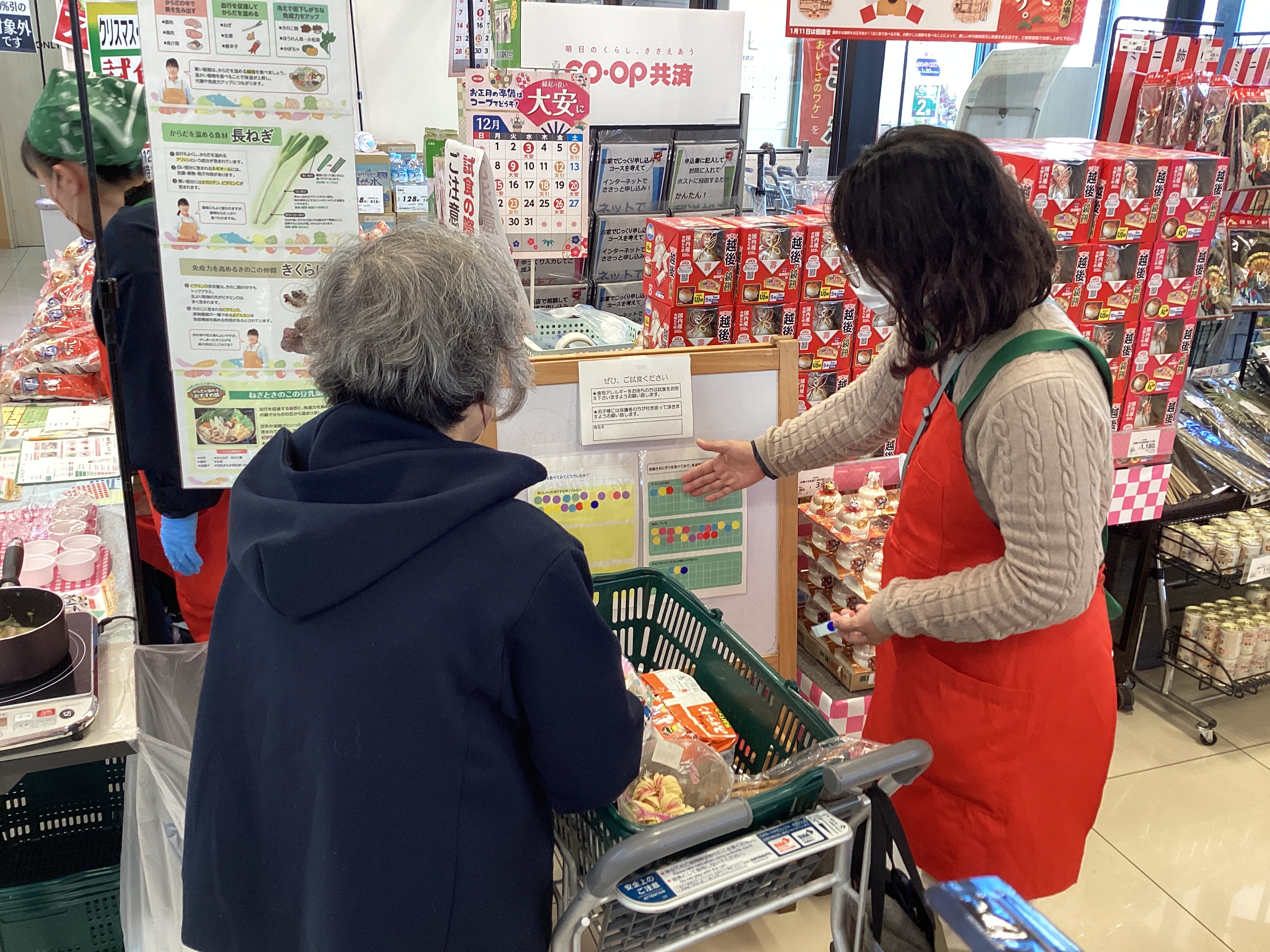 12月1日(月)南林間店(大和市)にて「あったかお鍋と年末予約商品試食会」と「ベジチェック測定会」を開催致しました。当日は34名(大人28名、子ども6名)の方々に参加いただきました。