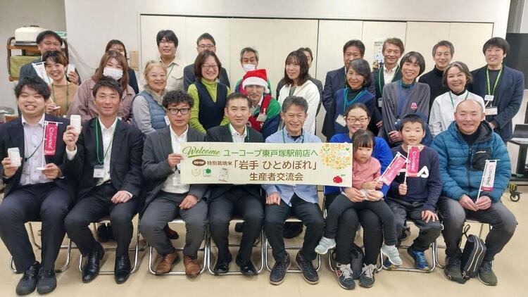 12月6日(土)、ユーコープ東戸塚駅前店にて「特別栽培米 岩手ひとめぼれ」の生産者である高橋さんをお迎えし、店頭での試食販売と交流会を開催しました。