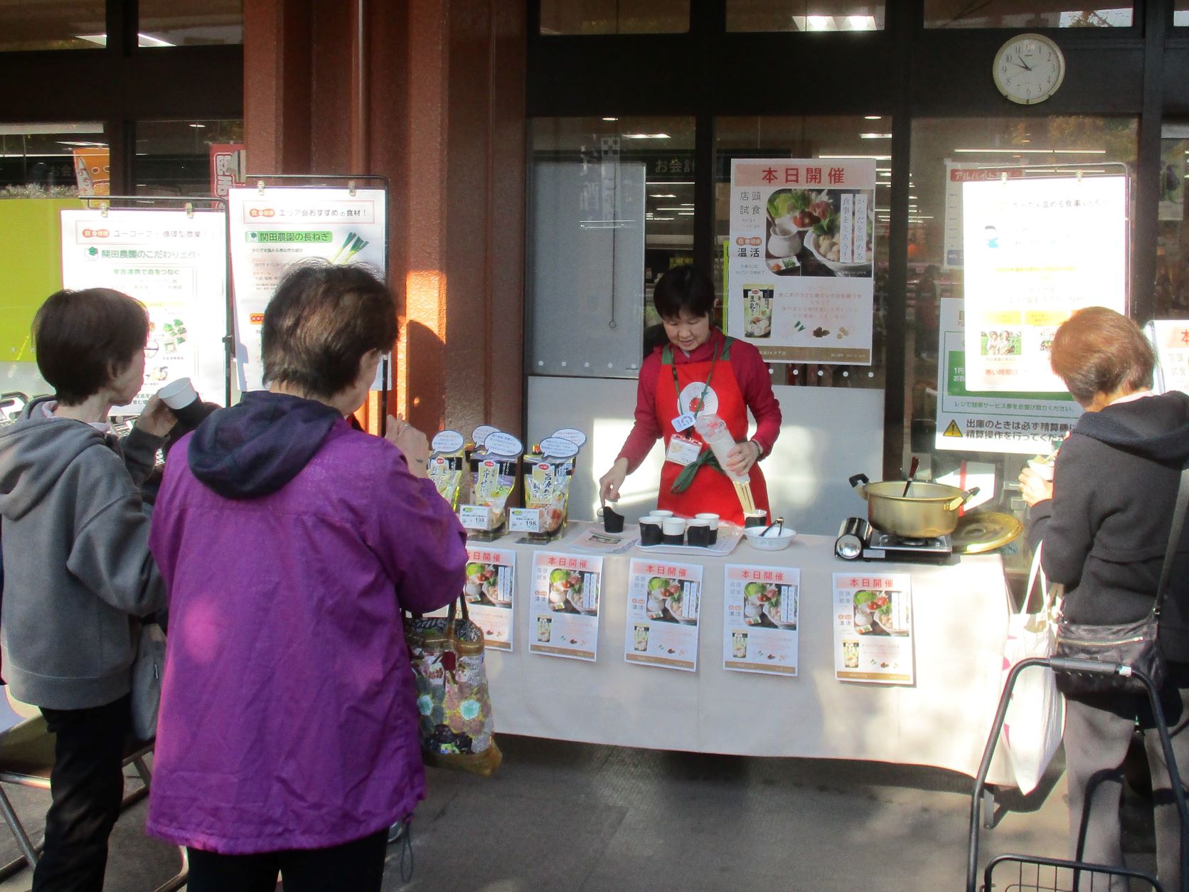 上郷店では、天候に恵まれ比較的あたたかい日ではありましたが、試食をされた方から「温かくておいしい」と喜ばれました。