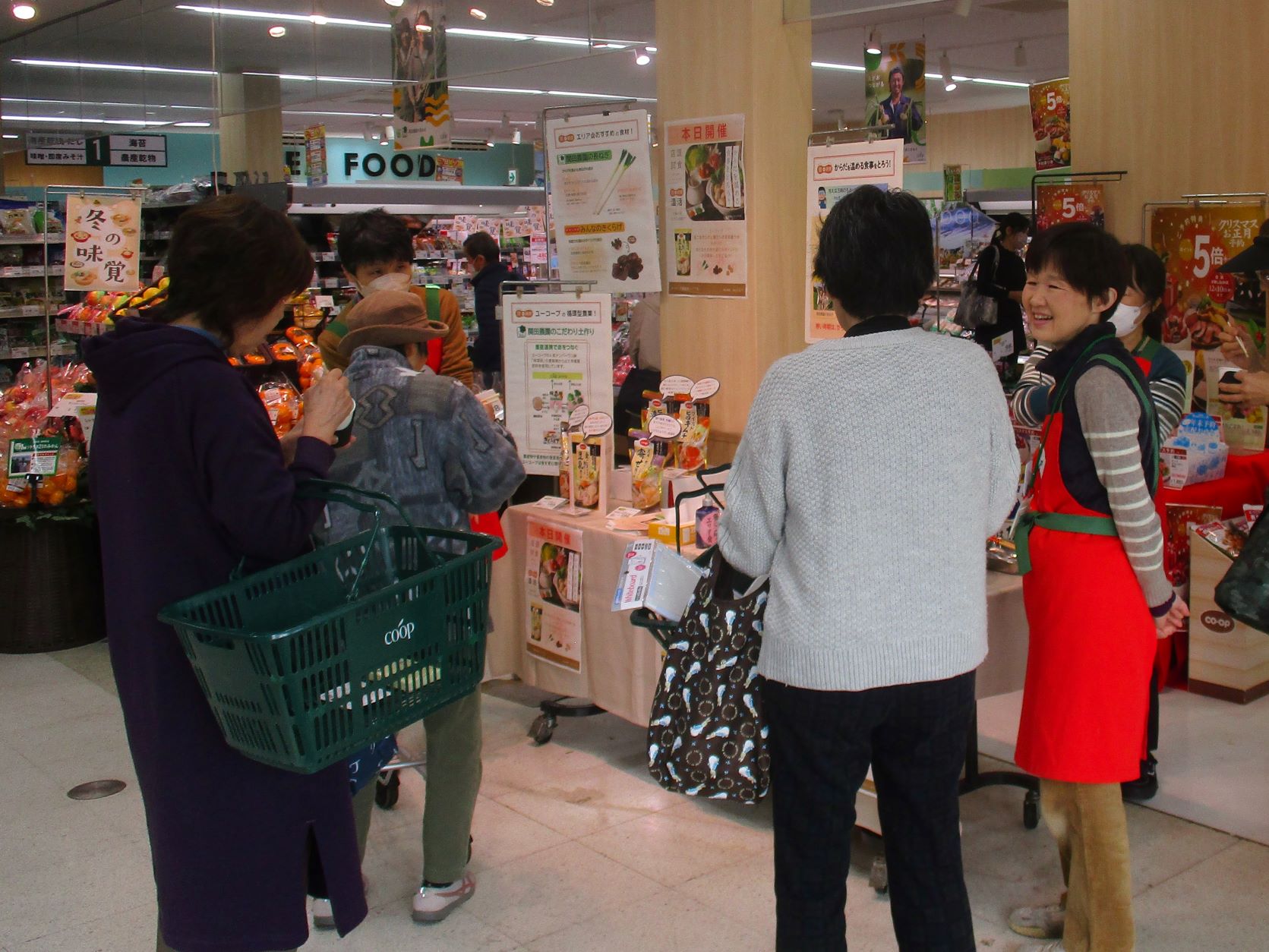 洋光台店では、開催直後に来てくださった組合員が知り合いの方々に声を掛けてくださり、次々と試食のブースに組合員の輪が広がりました。