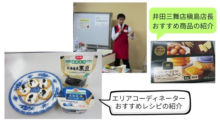 井田三舞店槇島店長から年末商品の説明やおすすめ商品の紹介があり、参加者の皆さんからの質問にもお答えいただき、にぎやかで楽しい交流会となりました。