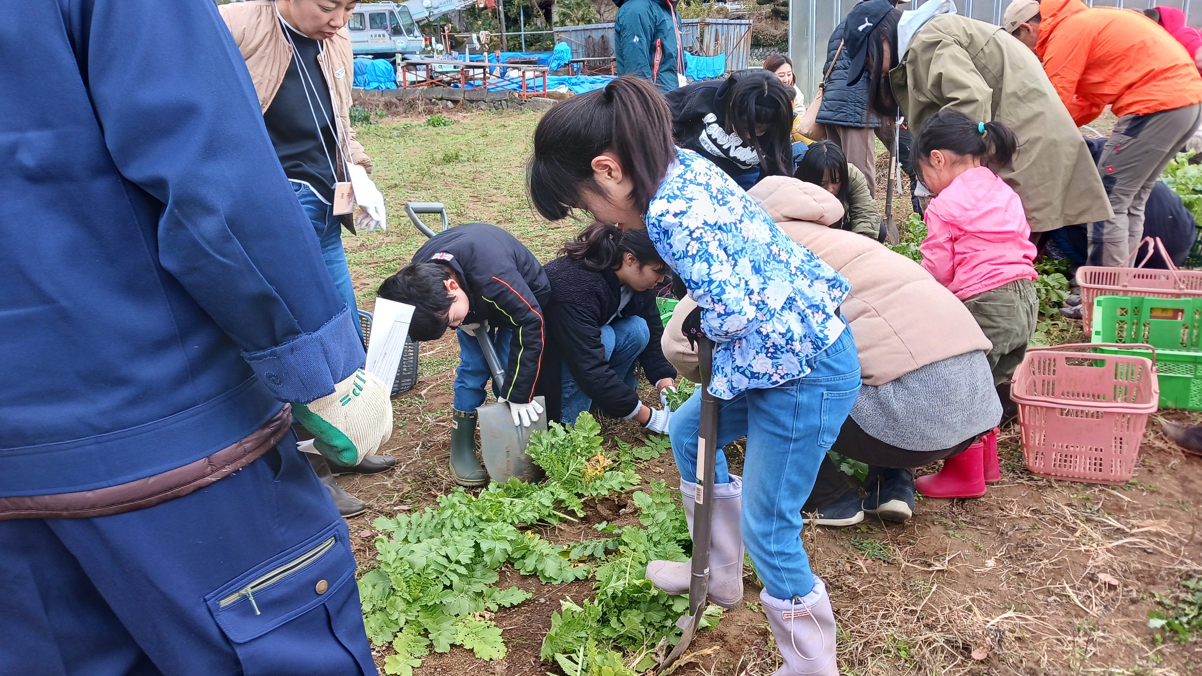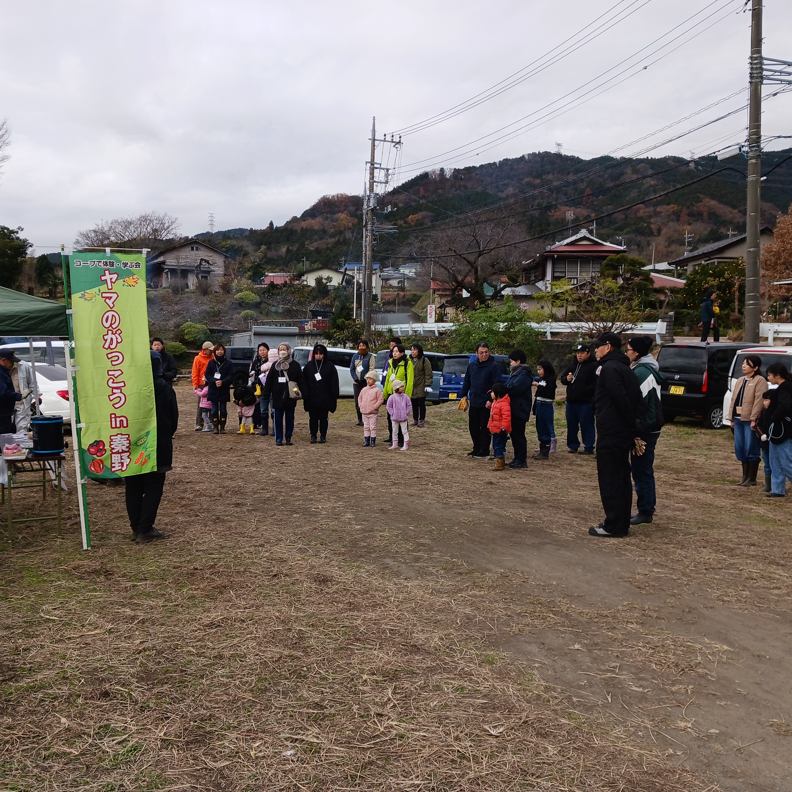 12月13日、快晴の中「食DE健康 コープで体験・学ぶ会 ヤマのがっこうin秦野 2025年度野菜クラス」収穫祭・閉校式を行いました。