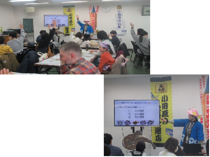 水産課の方の講習会とクイズでは、大人も子どもも楽しく参加しながら、身近な場所の