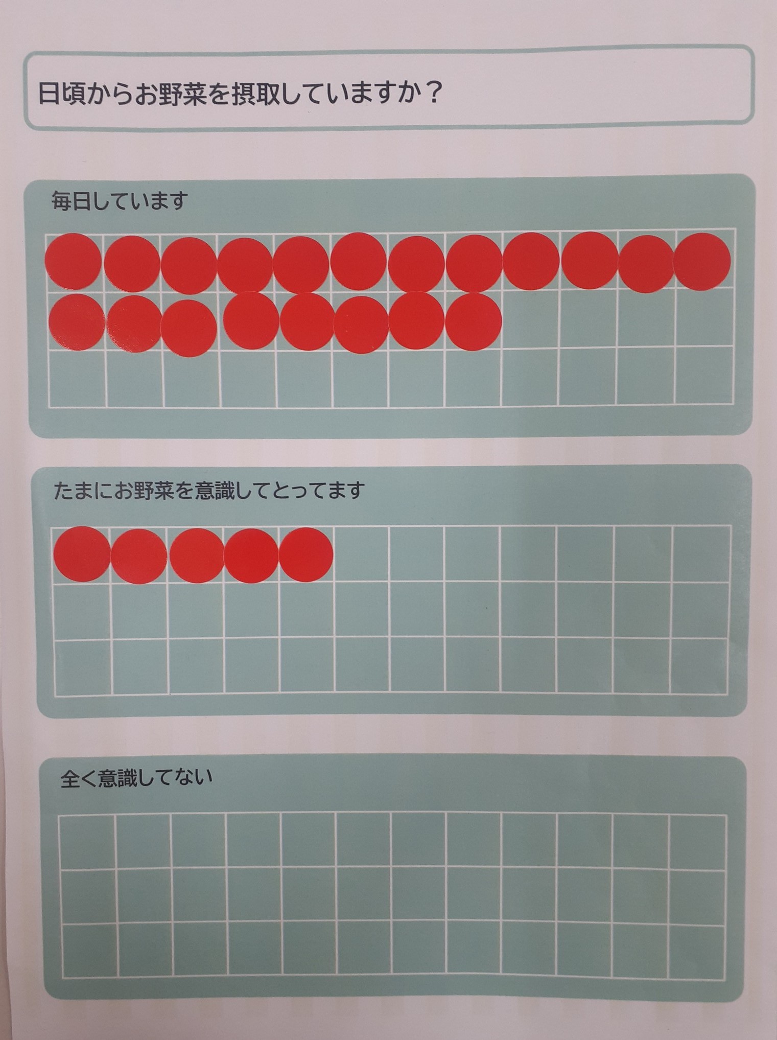 「日頃からお野菜を摂取していますか?」とういうアンケートでは、「毎日摂取している」という方が多くいました