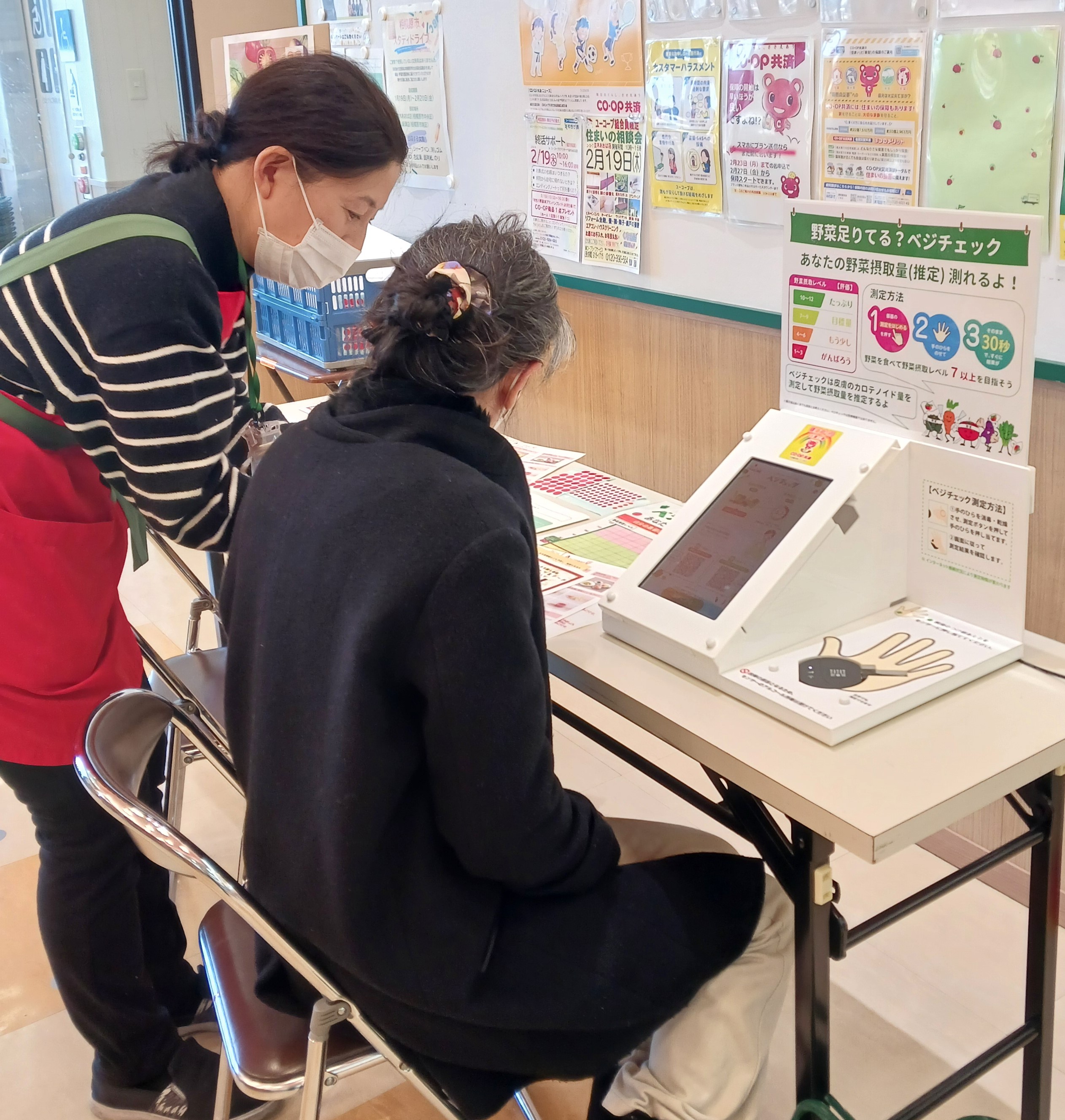 2026年2月9日(月)、ユーコープ並木あおば店(相模原市中央区)にて、手を当てて野菜の摂取量が計測できる「ベジチェック測定会」を開催しました。