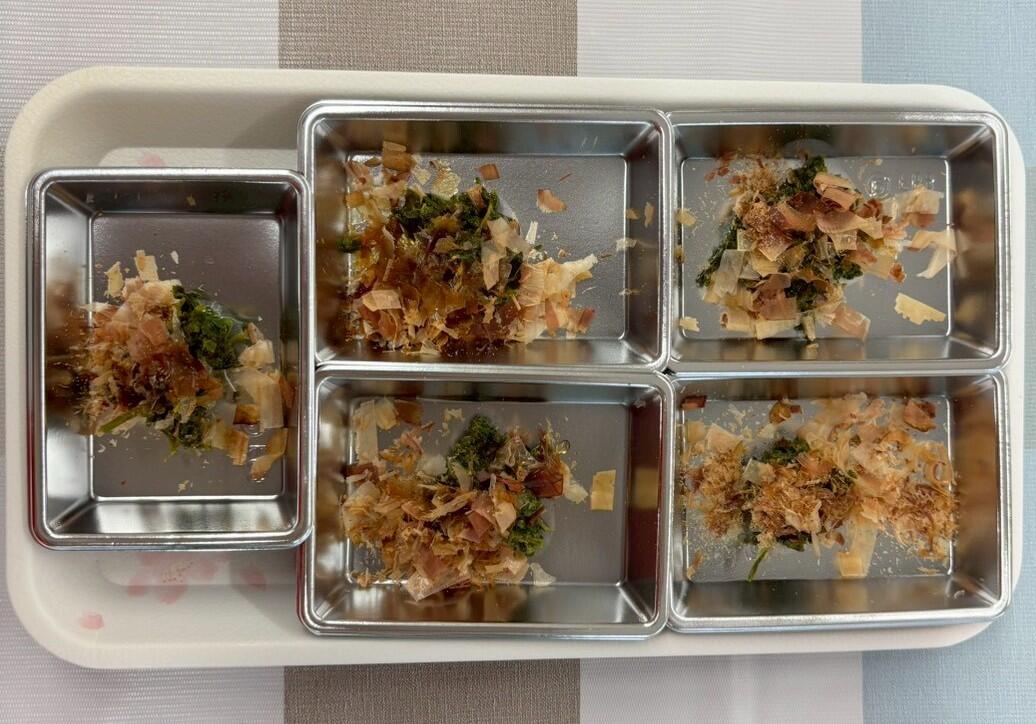 茶殻をかつおぶしとコープ商品の香り豊かなゆず果汁ぽん酢をかけて食べてみたら、おいしい…いける♪