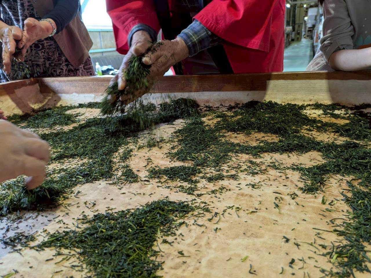 「手もみした手がお茶のいい香り~」とにおいを感じながら