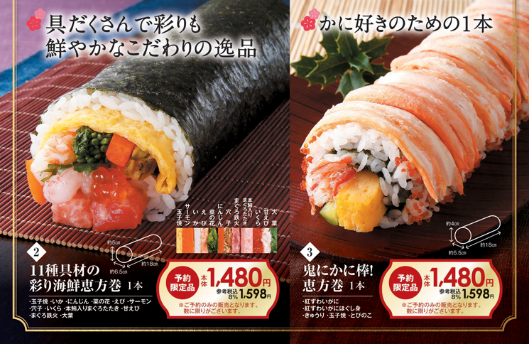 ◎11種具材の彩り海鮮恵方巻(写真左)