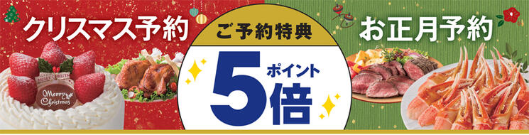おいしいものを組み合わせて、ホームパーティーやおもてなしに!今年も全店で「クリスマス予約」「お正月予約」を承ります。ご予約いただくと、もれなくポイント5倍プレゼント!