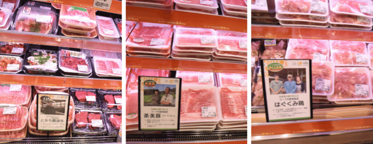 精肉コーナーは、出どころ確かなコープのブランド牛「とかち鹿追牛」、産地指定「茶美豚」「はぐくみ鶏」などコープ自慢のお肉が並びます。ぜひご賞味ください。