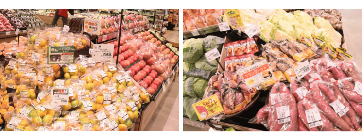 青果コーナーは、「ユーコープ産直商品」がおすすめ。「コープの産直」マークが目印です!他にも季節ごとの旬の野菜や果物を取り揃えています。