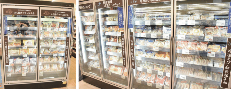さらに大きくなった冷凍食品コーナー。お弁当のおかずや冷凍野菜、便利なワンプレート商品なども充実。広く見やすくなって、選ぶ楽しみも大幅にアップ!