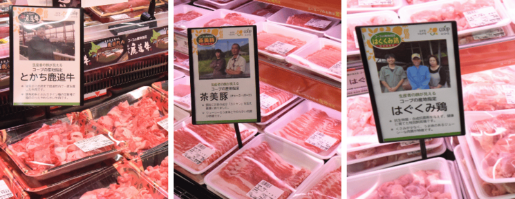 精肉コーナーは出どころ確かなコープのブランド牛「とかち鹿追牛」、産地指定「茶美豚」「はぐくみ鶏」などユーコープが自信をもっておすすめするお肉が並びます。ぜひご賞味ください。