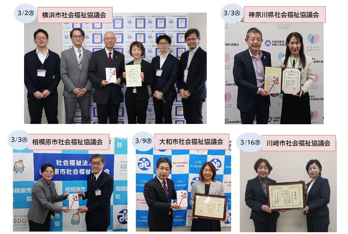 「書き損じハガキ・未使用切手」寄付活動を実施し、神奈川県内5つの社会福祉協議会や諸団体に寄付しました